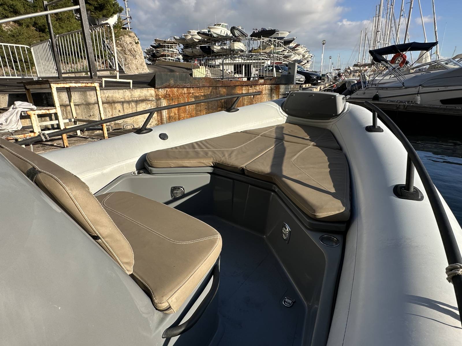 Douchette de cockpit, extensions de plateformes de bain, guindeau électrique, bain de soleil avant, coussins de cockpit, évier, mât de ski…