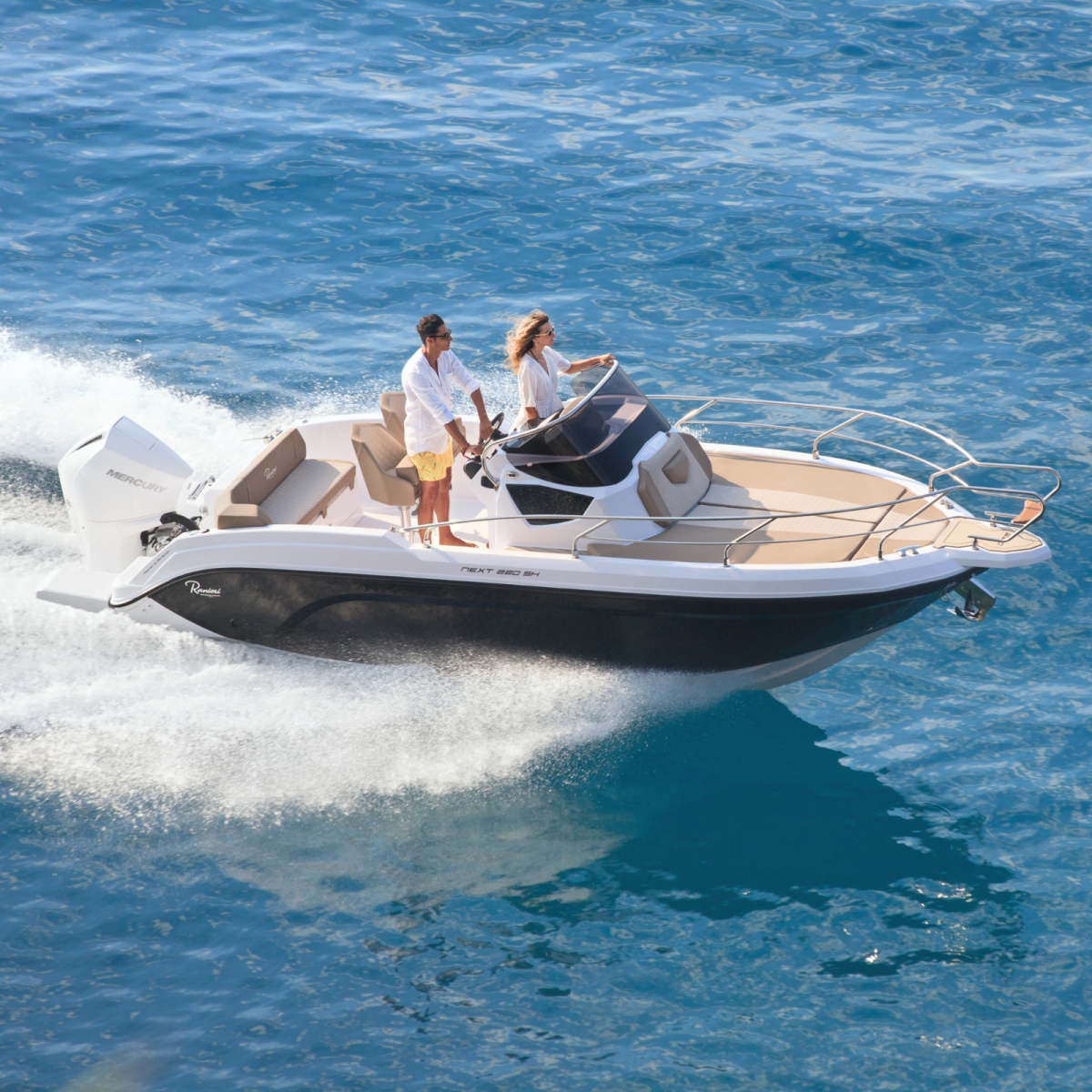 Le Ranieri Next 220 SH incarne l’élégance italienne et la polyvalence en mer. Avec ses lignes épurées et son design raffiné, ce bateau open de 7,35 mètres offre une expérience de navigation confortable et performante.