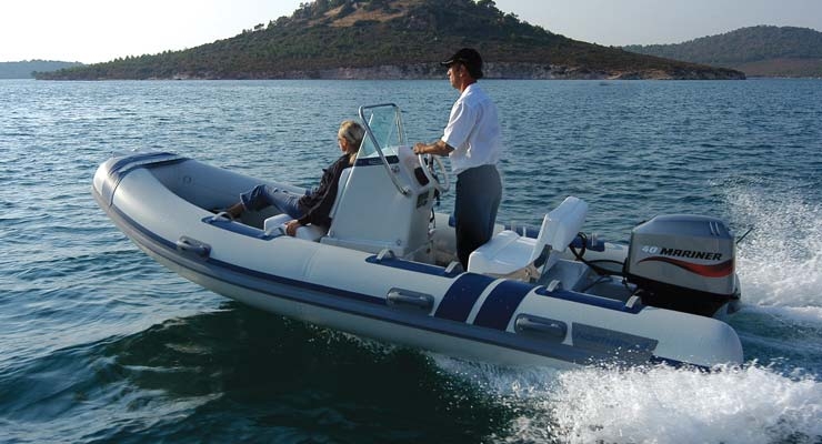 Petit semi-rigide avec un equipement std :banquette pilotage console+banquette avant ,bail à mouilage ,cokpit autovideur ,echelle de bain