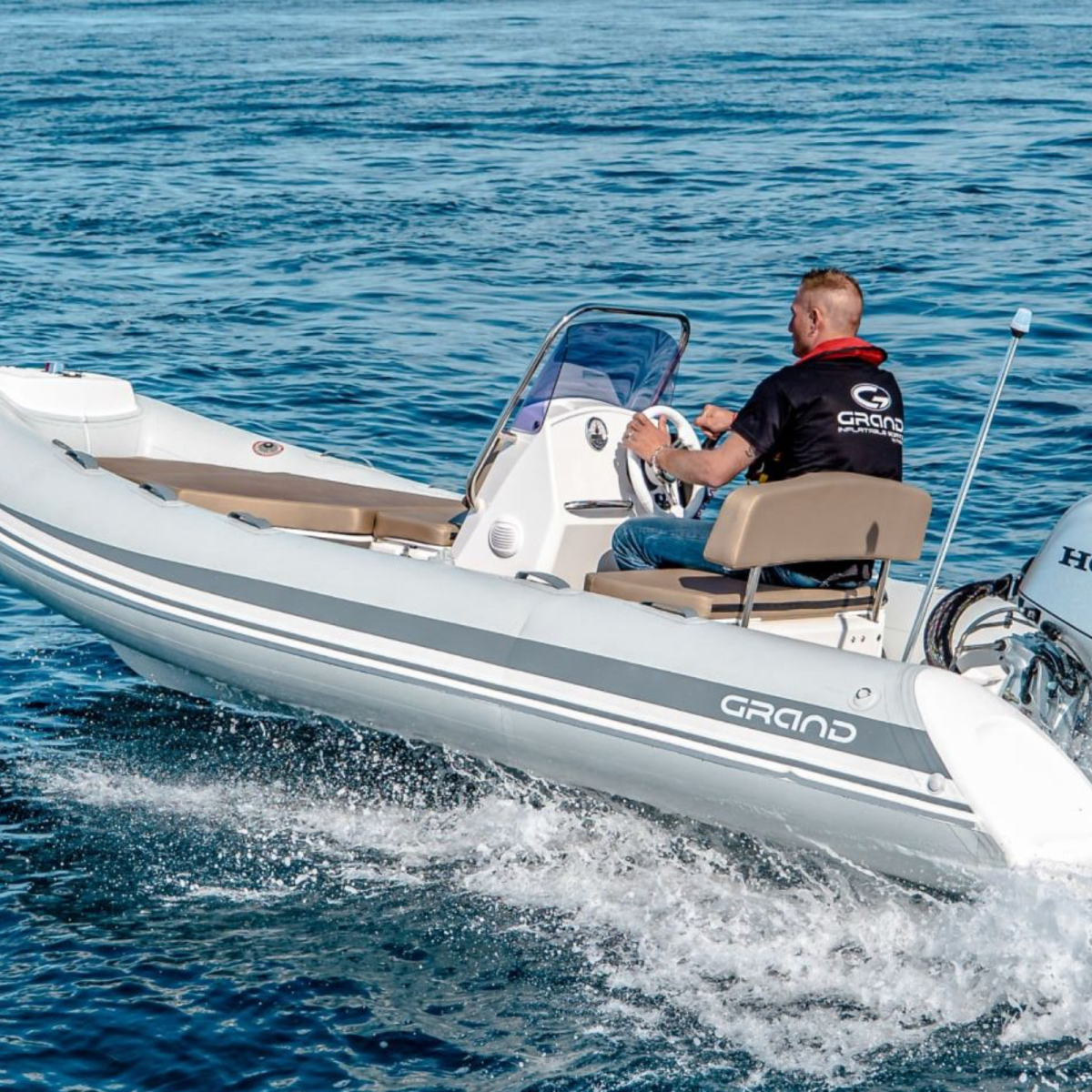 Découvrez le Silver Line S470N de GRAND : un semi-rigide de 4,70 mètres alliant élégance, polyvalence et performance. Avec une capacité jusqu'à 8 personnes et une motorisation maximale de 70 CV, il est idéal pour les balades en famille, les sports nautiques ou comme annexe de yacht.