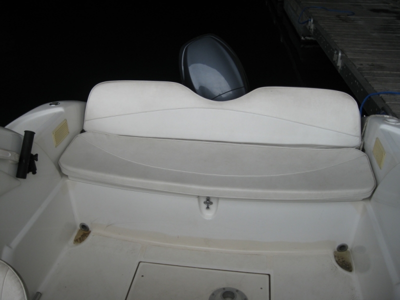 Equipement complet: Douchette, taud de soleil, table, bain de soleil, cabine 2 couchages, evier et rangement, Glacière, Sondeur GPS, equipement de securité complet.
