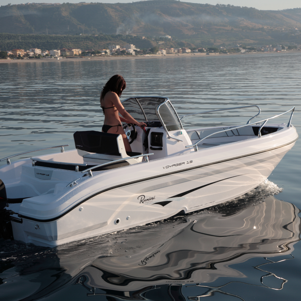 Le Ranieri Voyager 19 S est un bateau open italien de 5,65 mètres, conçu pour offrir polyvalence et confort lors de sorties en mer. Capable d'accueillir jusqu'à 7 personnes, il est idéal pour les balades côtières, les baignades et les activités nautiques.